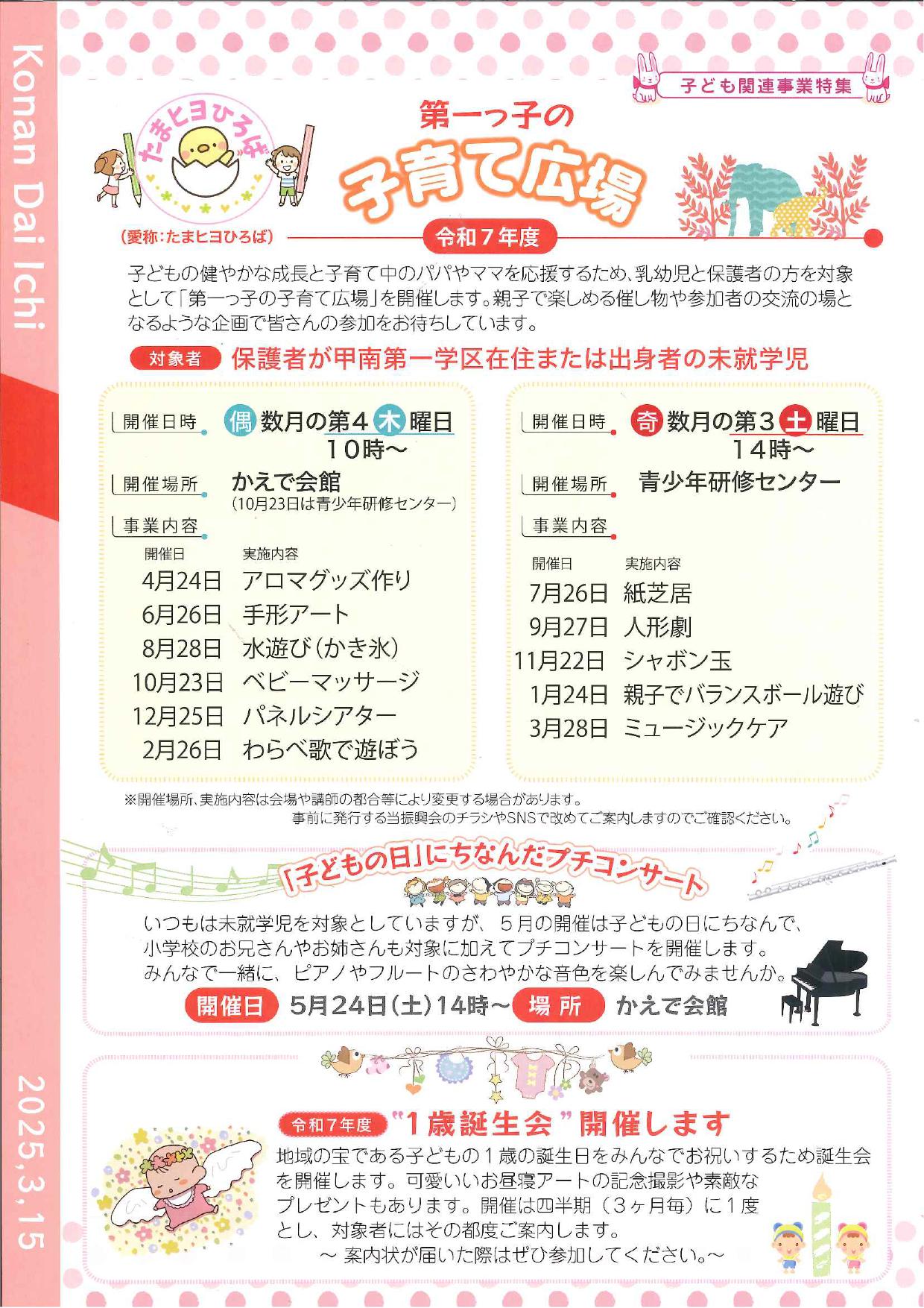 第一っ子の子育てひろば あそぶ 作る 出産前 ママ・パパ 未就園児 開催日 2026.01.24(土) 開催時間 14:00~ 締切 開催場所 甲南青少年研修センター MAP 保護者参加 要 きょうだい参加 可 参加費 無料 託児 無 詳細 親子でバランスボール遊び 対象:保護者が甲南第一学区在住または出身者の未就学児 親子で楽しめる催し物や参加者の交流の場となるような企画で皆さんの参加をお待ちしています。 一覧に戻る 施設アイコンの説明 アイコンの説明。アイコンの説明。アイコンの説明。 アイコンの説明。アイコンの説明。アイコンの説明。 アイコンの説明。アイコンの説明。アイコンの説明。 アイコンの説明。アイコンの説明。アイコンの説明。 アイコンの説明。アイコンの説明。アイコンの説明。 アイコンの説明。アイコンの説明。アイコンの説明。 アイコンの説明。アイコンの説明。アイコンの説明。 アイコンの説明。アイコンの説明。アイコンの説明。 アイコンの説明。アイコンの説明。アイコンの説明。 アイコンの説明。アイコンの説明。アイコンの説明。 閉じる