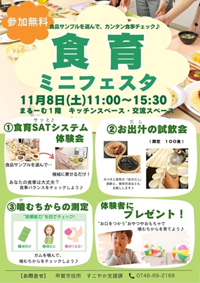 食育ミニフェスタ 学ぶ 体験 健康 すべて 開催日 2025.11.08(土) 開催時間 11:00~15:30 締切 開催場所 まるーむ1階 〒528-0005 甲賀市水口町水口6009-1 MAP 保護者参加 要 きょうだい参加 可 参加費 無料 託児 無 詳細 参加無料!食育ミニフェスタ 食に関する体験をしよう 〇日時:11月8日(土)11時~15時30分 〇会場:まるーむ1階 キッチンスペース・交流スペース 〇予約:不要。当日会場にお越しください 〇問合先:甲賀市役所 すこやか支援課 TEL/0748-69-2168 一覧に戻る 施設アイコンの説明 アイコンの説明。アイコンの説明。アイコンの説明。 アイコンの説明。アイコンの説明。アイコンの説明。 アイコンの説明。アイコンの説明。アイコンの説明。 アイコンの説明。アイコンの説明。アイコンの説明。 アイコンの説明。アイコンの説明。アイコンの説明。 アイコンの説明。アイコンの説明。アイコンの説明。 アイコンの説明。アイコンの説明。アイコンの説明。 アイコンの説明。アイコンの説明。アイコンの説明。 アイコンの説明。アイコンの説明。アイコンの説明。 アイコンの説明。アイコンの説明。アイコンの説明。 閉じる