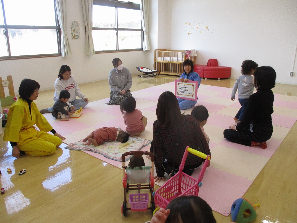 | 詳細 | 対象)2歳以上の未就園児と保護者(保育園に通っている1~2歳児の子どもと保護者も利用可能) 内容)年齢の近い友だちと出会えるオープンルームです。時間内いつでも利用できます。おしゃべり会の時間もあります。 |