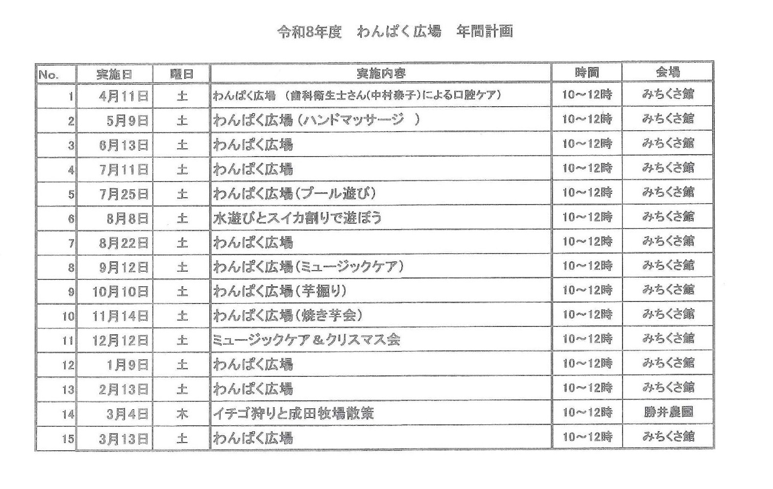ニューポリス区 「わんぱく広場」 学ぶ あそぶ すべて 開催日 2026.06.13(土) 開催時間 10:00~12:00 締切 開催場所 みちくさ館 甲賀市甲南町深川2−84 MAP 電話番号 0748-70-3021 保護者参加 要 きょうだい参加 可 参加費 無料 託児 無 詳細 対象:ニューポリス区とその近隣の未就園児と保護者 申し込み方法 甲南子育て支援センター TEL/0748-86-0949 一覧に戻る 施設アイコンの説明 アイコンの説明。アイコンの説明。アイコンの説明。 アイコンの説明。アイコンの説明。アイコンの説明。 アイコンの説明。アイコンの説明。アイコンの説明。 アイコンの説明。アイコンの説明。アイコンの説明。 アイコンの説明。アイコンの説明。アイコンの説明。 アイコンの説明。アイコンの説明。アイコンの説明。 アイコンの説明。アイコンの説明。アイコンの説明。 アイコンの説明。アイコンの説明。アイコンの説明。 アイコンの説明。アイコンの説明。アイコンの説明。 アイコンの説明。アイコンの説明。アイコンの説明。 閉じる